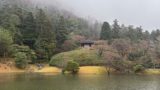 The temple grounds, which are thickly wooded, are dotted with tea ceremony rooms. It is located next to Mt. Takagamine and Mt. Washigamine, and in the distance you can see the 36 peaks of the Higashiyama Mountains.