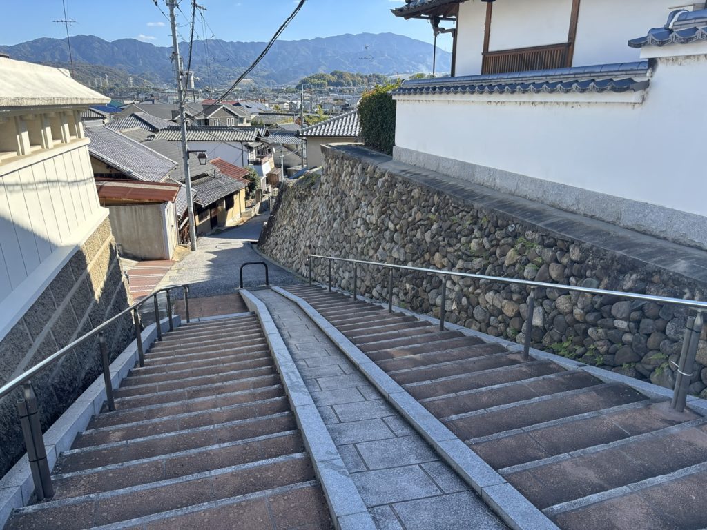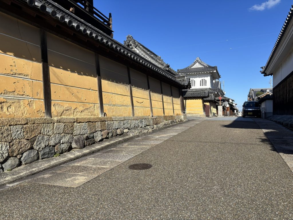 The town, centered around Kosho-ji Temple, measured approximately 470 meters east-west and 400 meters north-south, roughly corresponding to present-day Tondabayashi-cho.The town’s layout still retains its original form today. Features designed for defense—intersections deliberately obstructed for poor visibility, fire-prevention waterways, and fragmentary earthen rampart remains—preserve the town’s historical character.