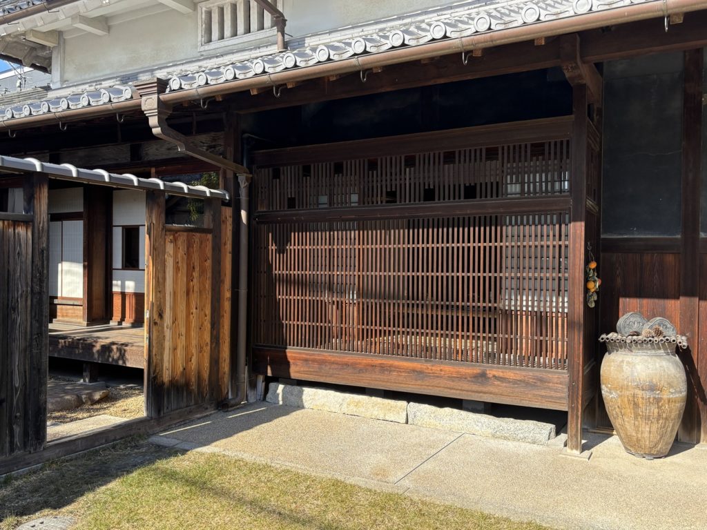 Now, Tondabayashi Jinai-machi also developed as a Jinai-machi after Kosho-ji Temple (established as a branch temple of Kyoto’s Kosho-ji Temple) was built along the banks of the Ishi-kawa River in Minami-Kawachi during the mid-16th century Sengoku period.During its initial development, it appears the outer perimeter featured earthen ramparts and moats.The town had four entrances and exits, which were closed at night to maintain public order.