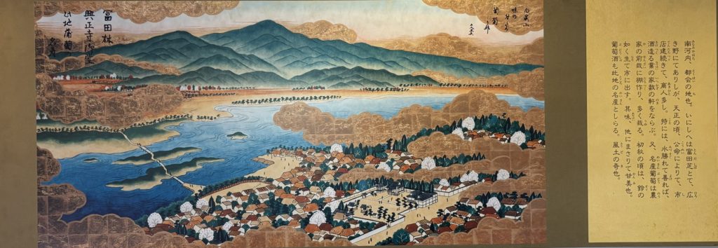 According to records from the late 17th century during the Edo period, trade in barrels, cloth, sake brewing, and cotton flourished, with about 150 shops lining the streets.