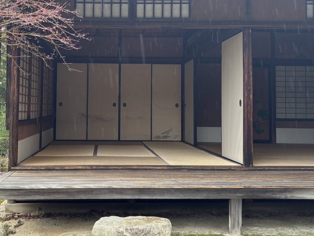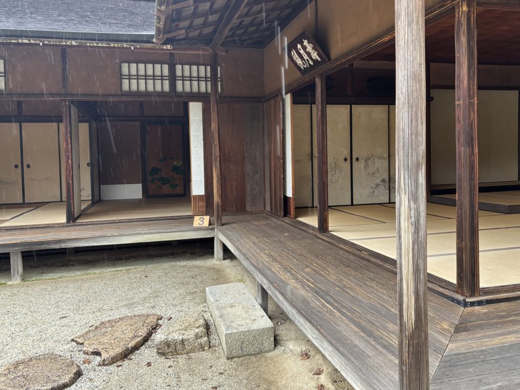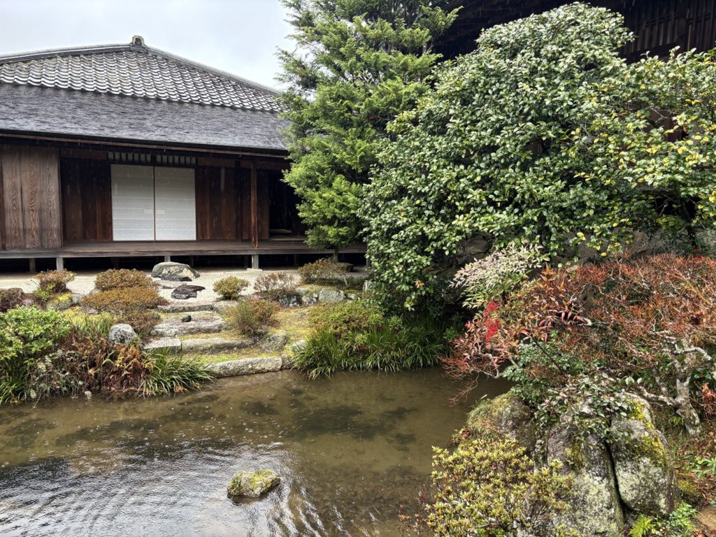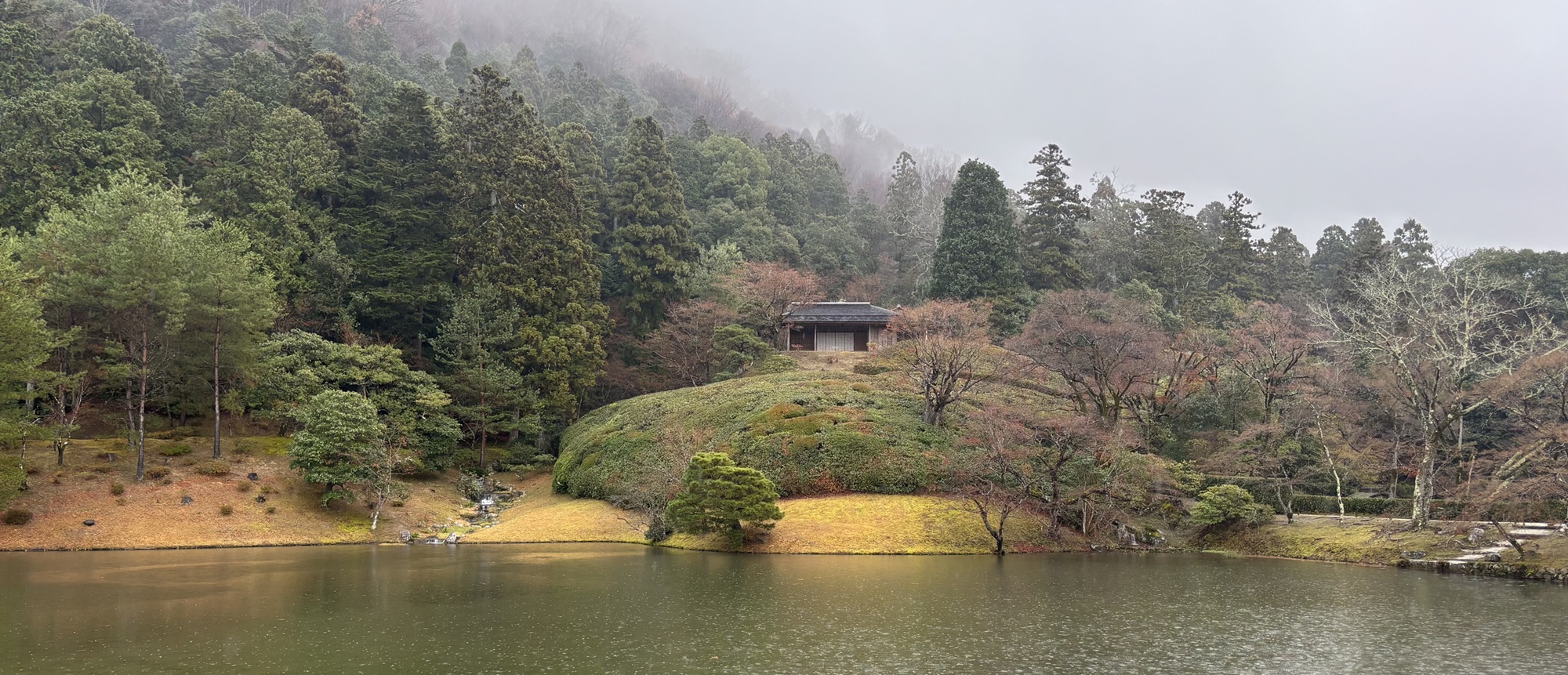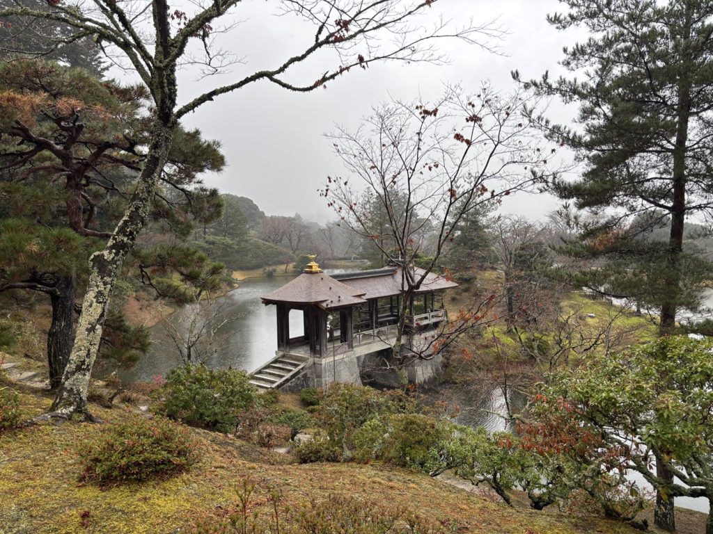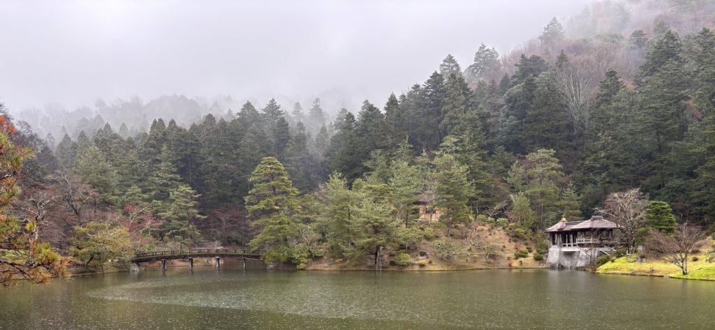 Unfortunately, the rain meant the view from the Rinun-tei Pavilion.was not good, but I think it’s still nice to look out over the Yokuryu-chi Pond and the hazy scenery from this slightly elevated spot.The mountains behind the Yokuryu-chi Pond are veiled in mist, making it look like a ink wash painting.The last time I visited was on a sunny day, but even in the rain, Shugakuin Imperial Villa has its own charm.