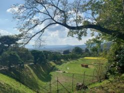 When you come to Imamiya-jinja Shrine, of course you have to eat aburi-mochi.Aburi-mochi is a kind of rice cake snack, made of thumb-sized rice cakes dredged with soybean flour, skewered on a bamboo stick, roasted over charcoal fire, and then basted with white bean pastes.